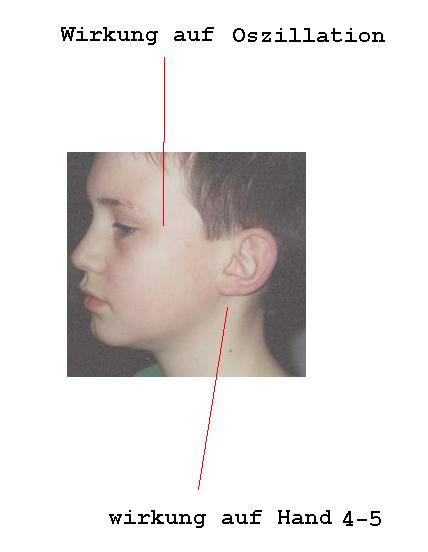 der Xylocain-Ampulle. Mit Blut waren alle Ohrpunkte noch zu finden. Mit der Xylocain-Ampulle konnte man die Symptomatikpunkte der Stirn und Hand noch finden.