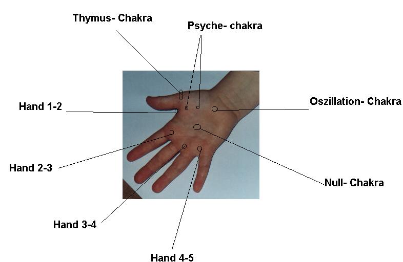 Ich habe die Handpunkte hier nicht Chakren genannt, sondern Chakren-Hinweispunkte, weil der erste Hinweispunkt mit der