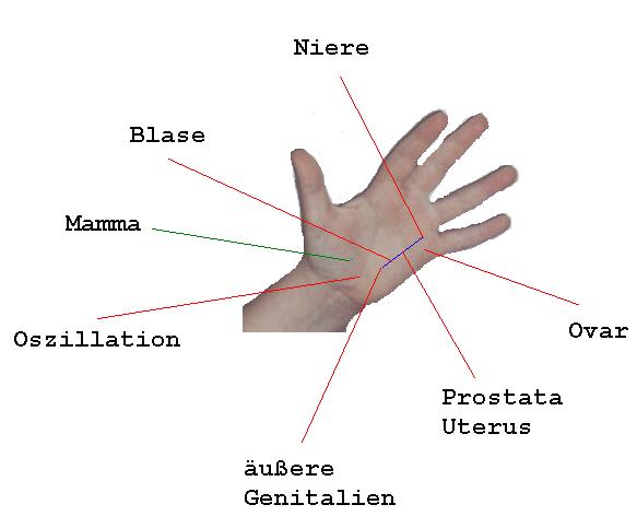wird. Bei Krebserkrankung sind dann die Oszillations-, Brust- und Ovarpunkte zu finden. Bei gutartigen Tumoren ist nur der Brustpunkt vorhanden.