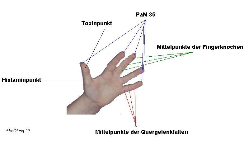und die Mittelpunkte der proximalen, mittleren und distalen Fingerglieder. Als Zeichen einer inneren Vergiftung findet man den Histamin- und den Toxinpunkt des Daumens.
